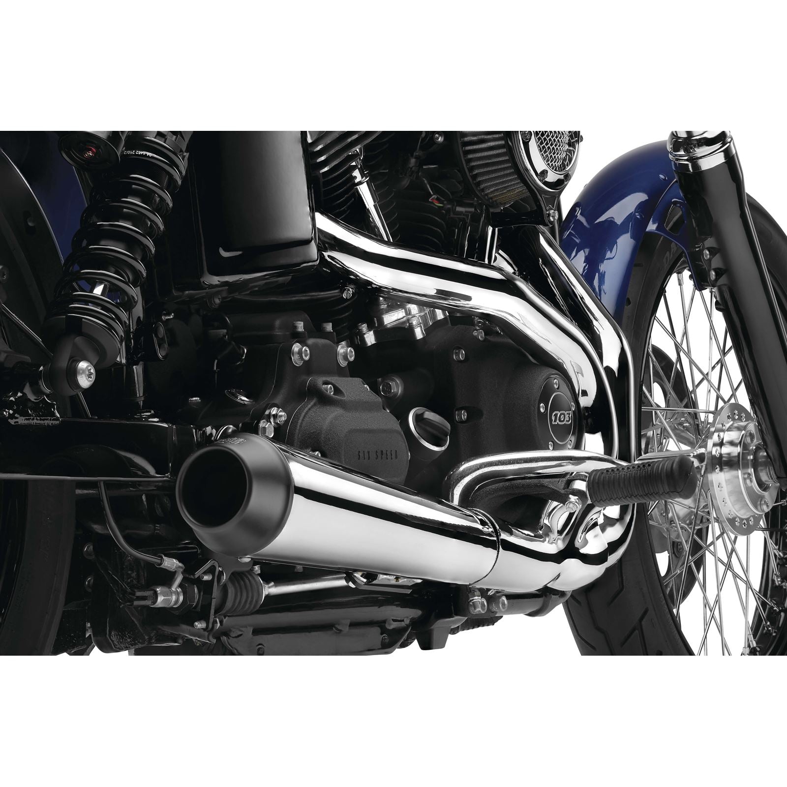 • Uses equal-length exhaust headers mated to a chrome cone megaphone muffler